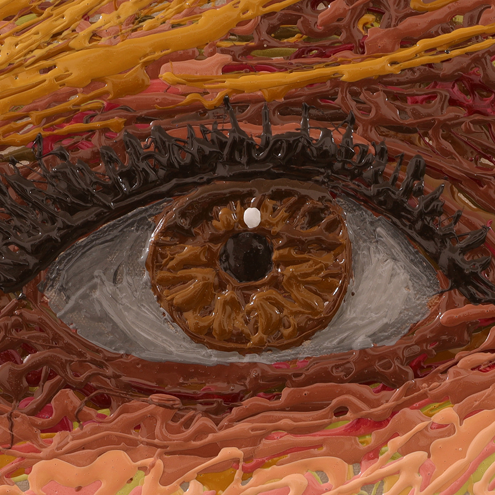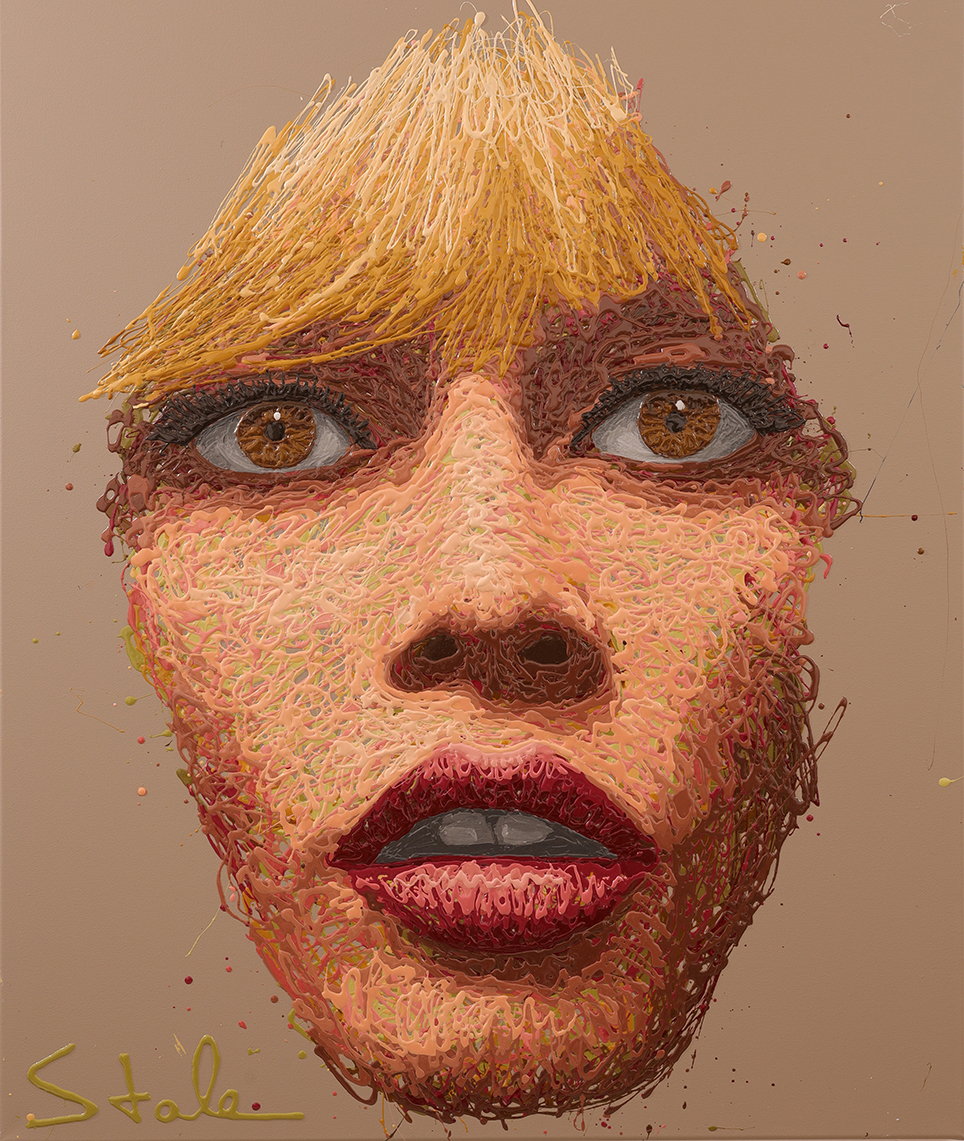 For this new series, I’ve taken two strong elements of the earlier series. From 2015 until 2017 my artworks primarily had colorful background layers but the top layers were black, grey, and white. From 2018 until 2020 I opted for softer pastel backgrounds and more expressive and realistically colored portraits. For this series, I’ve combined colorful backgrounds with realistically colored portraits. The best of both worlds.